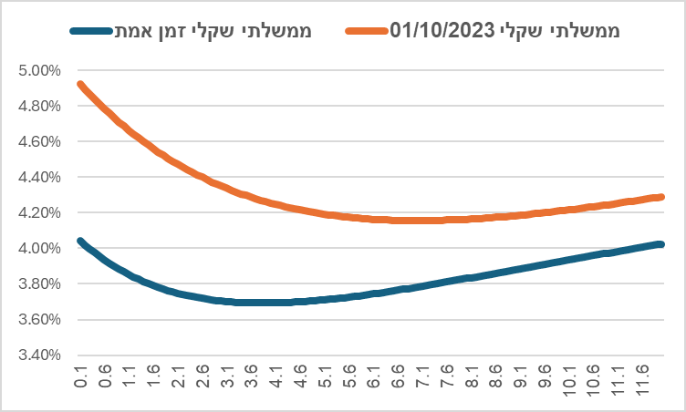 ויש גם את השאלה לגבי המדיניות המוניטרית. הירידה בסיכון הבטחוני לצד התמתנות האינפלציה (לפחות כפי שזה משתקף במדד האחרון) מעלים את הסיכוי שהריבית תופחת בנובמבר. הרמה שאליה עשויה הריבית לרדת תלויה בשני גורמים. הראשון, הריבית הריאלית. השיעור הממוצע של הריבית הריאלית בישראל עומד על כ 1.5%. יש לציין שטווח הריבית הריאלית נע בין 1%-3%. אם נניח באופן ליברלי שהריבית הריאלית תעמוד על 1.5% והאינפלציה תהיה 2.25% לערך, אזי ניתן לצפות שהריבית תרד לרמה של 3.75%. הניתוח הפשטני הזה מיועד כדי לבצע הערכה בלבד ואינו לוקח בחשבון (וגם אינו יכול) פרמטרים כמו שיעור תעסוקה או חזרה (צפויה?) לשיעורי צריכה פרטית גבוהים למשל . ויש פרמטר נוסף והוא תוואי הריבית בארה"ב. מאז הפחתת הריבית האחרונה בארה"ב, השקל התחזק מאוד, גם בזכות הציפיות לסיום המלחמה. אלא שבהינתן הפוליטיזציה המואצת של הפד, סביר להניח שהלחצים להפחתת הריבית בארה"ב יגברו, מה שכמובן ייאלץ את בנק ישראל לפעול בהתאם ככל שהשקל ימשיך להתחזק. לא פשוט בכלל. גורם נוסף אותו יש לקחת בחשבון הוא היצוא. ניתן להעריך שהיצוא של ישראל, בעיקר הביטחוני עומד לעלות בשיעורים ניכרים נוכח ההתפתחויות הטכנולוגית בתחום הזה שהואצו ב"זכות" המלחמה וגם לאור הציפיה להתמתנות החרמות (בין שאלו רשמיות ובין שהן סמויות). המוצרים האיכותיים שמייצרת התעשייה הביטחונית המקומית מגיעים במקביל לעלייה החדה בביקוש שמגיעה בעיקר ממערב אירופה (וגם מאסיה) שמוצאת את עצמה לא מוכנה מול האיומים הצבאיים כלפיה שהתגברו מאוד מצד רוסיה. העלייה ביצוא הביטחוני שמצטרפת לתעשיית ההיי טק המקומית יכולים להגביר את הלחצים להתחזקות השקל, מה שיוצר אתגר לא פשוט לבנק ישראל בהליכה על הקו העדין שבין שמירה על פער ריביות נמוך ללחצי אינפלציה מקומיים ככל שאלו יהיו. כך או כך, להערכתנו שוק האג"ח מניח הנחות אופטימיות שגם אם הן תתממשנה, מן הראוי לקחת כעת מקדם סיכון. הריצה בשוק האג"ח לאחרונה הקטינה מאוד את פוטנציאל הרווח ובהינתן מבנה העקום הנוכחי, הדרך האופטימלית להחזיק במח"מ שעולה על שנתיים היא באופן סינטטי.